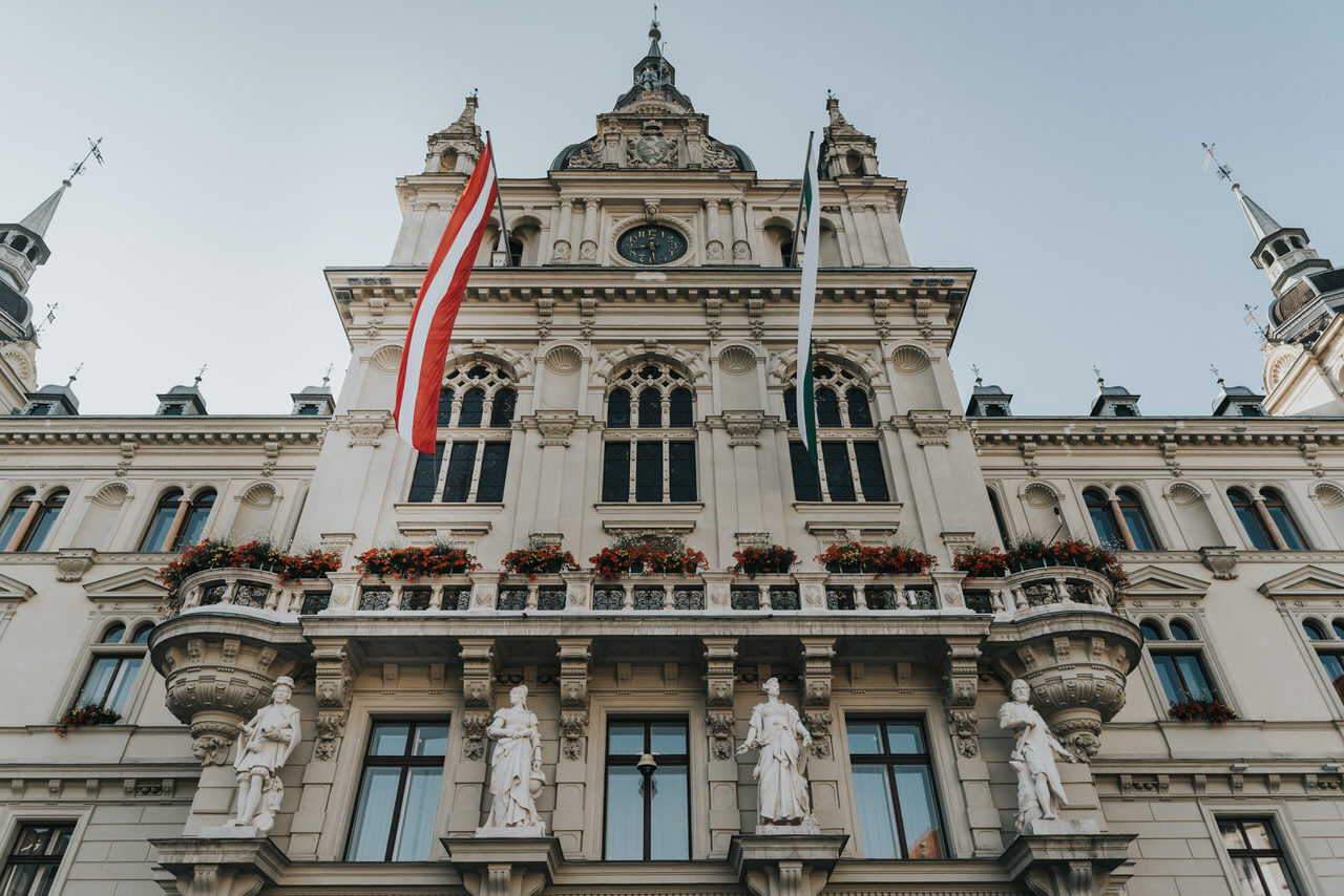 The wedding started early in the morning at Town Hall in Graz for a civil wedding ceremony. In Austria there is a law you need to have civil or both civil and church wedding . The wedding in Town hall was short we just few friends and family, and the wedding ceremony was scheduled latetr afternoon, so ther took a breakfast break at Cafe Rosenhain. It is a beautiful resturant with great view where you can see all the city. Also it could be a great place to have an open air wedding. To see their story of the day please take a look in images below