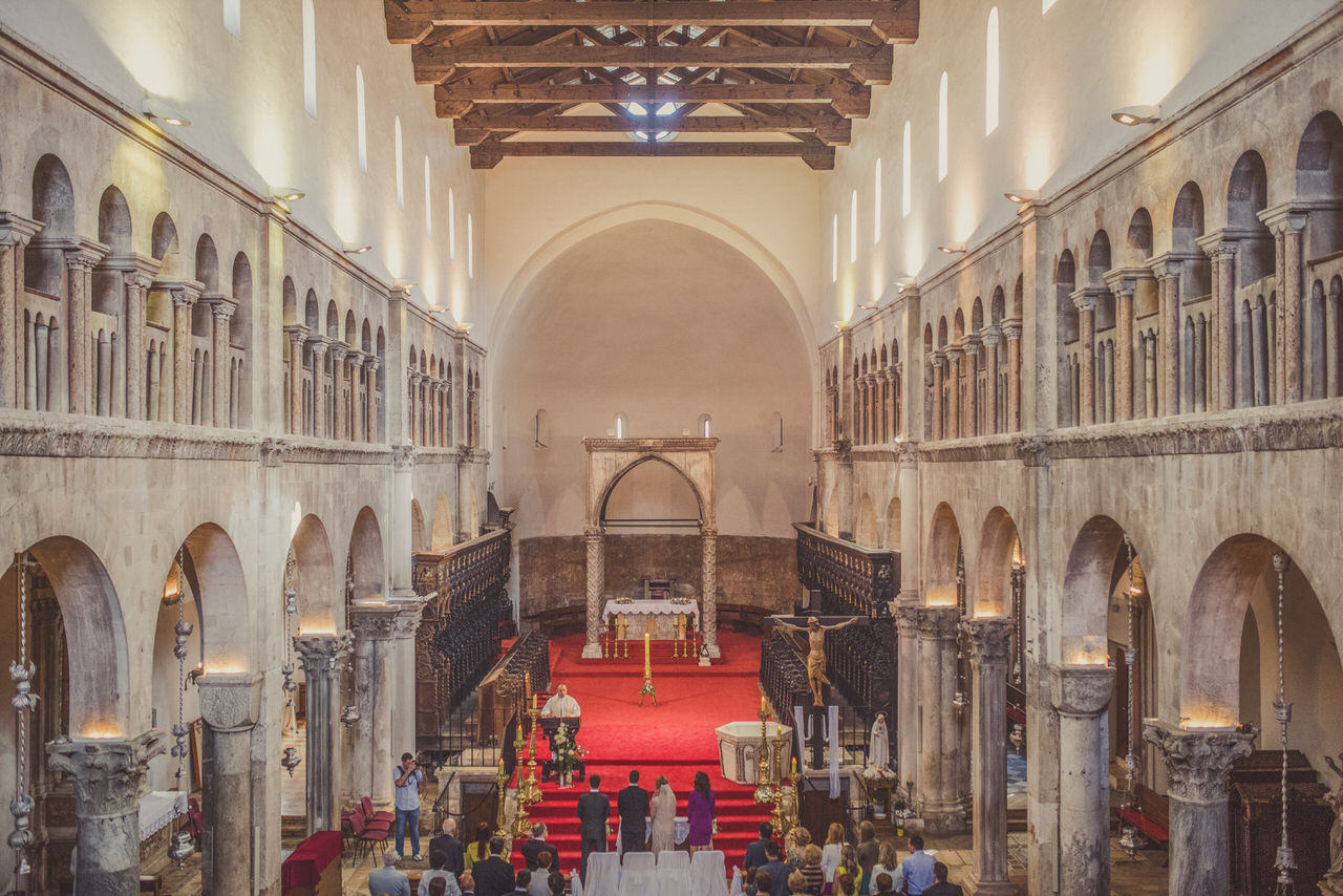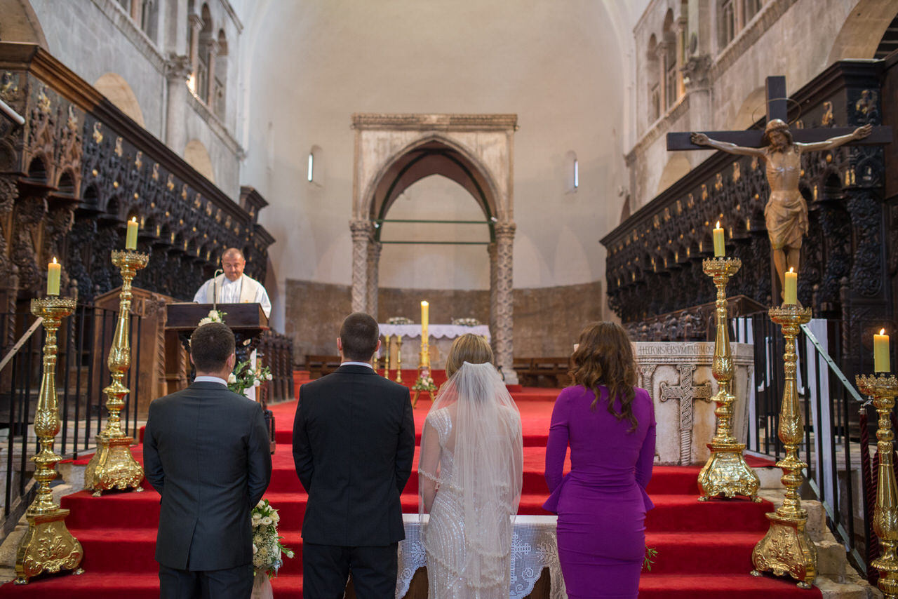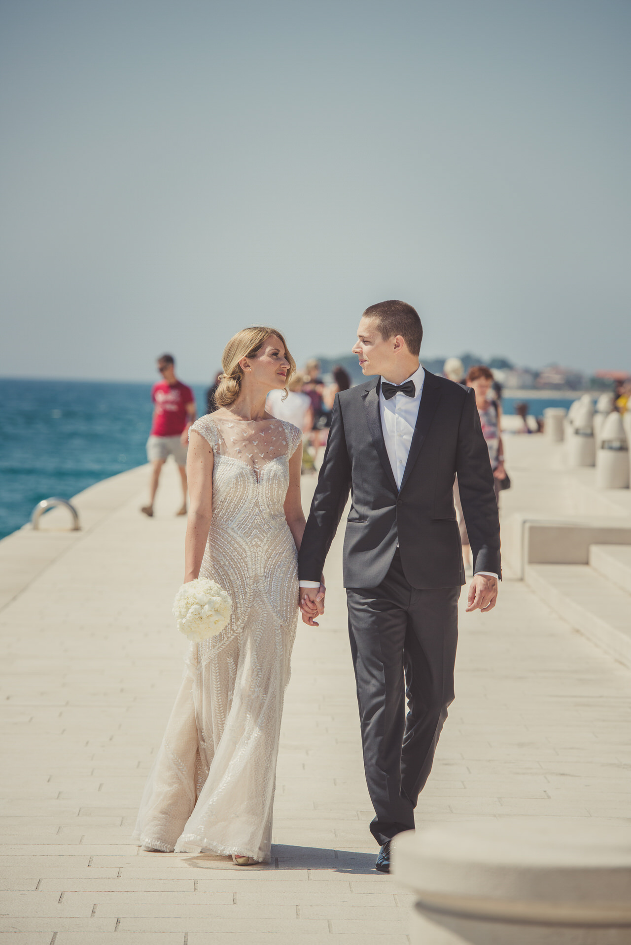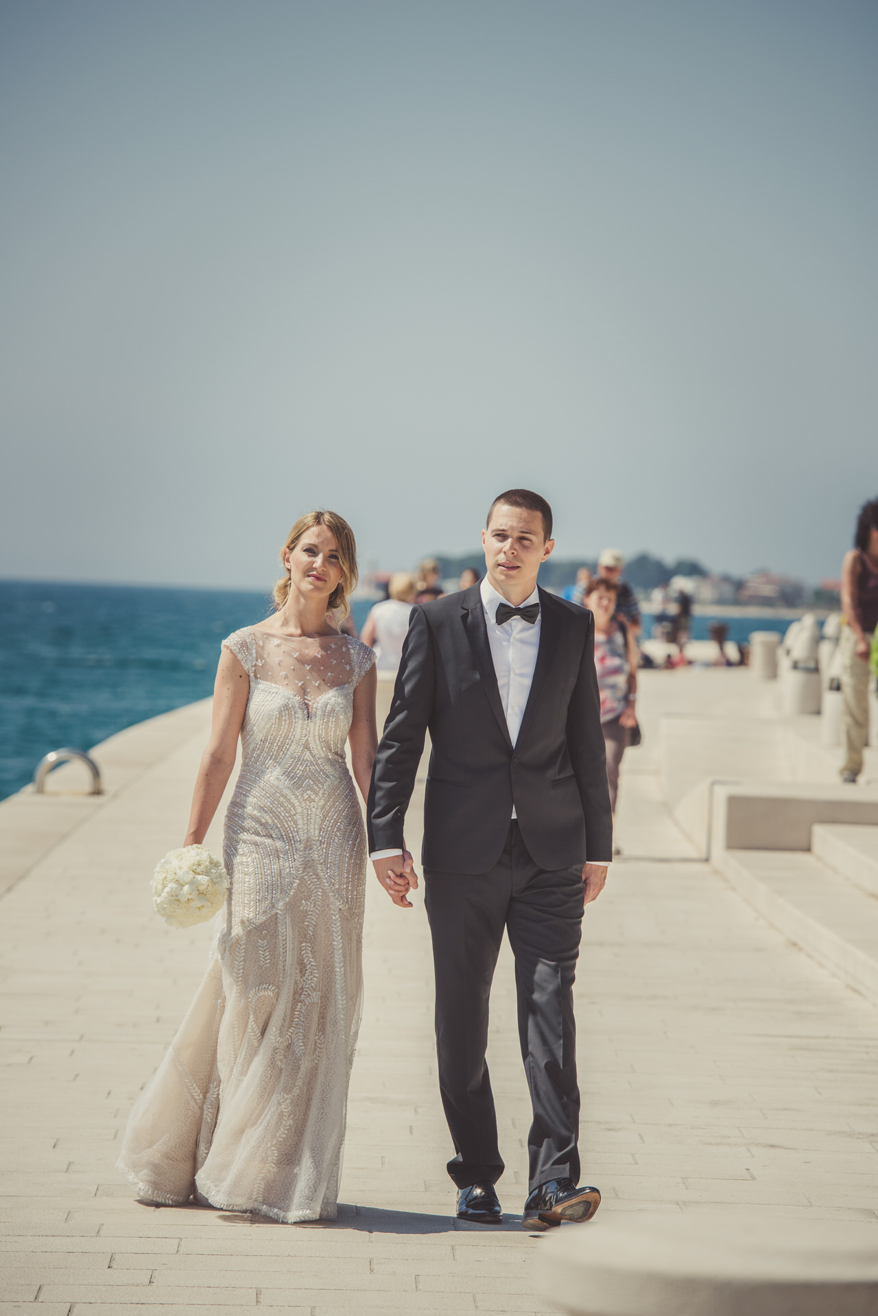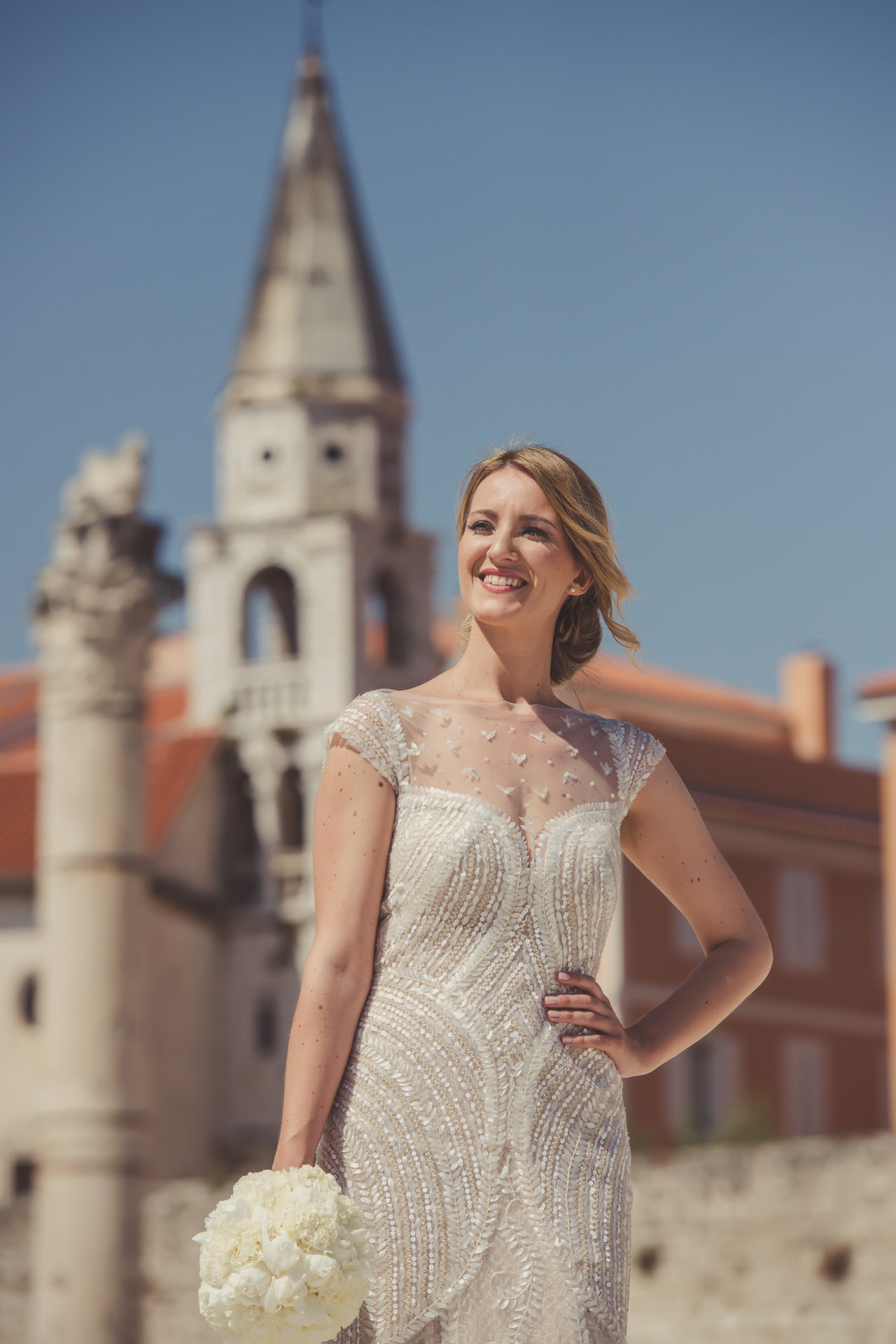 A gloriously sunny day with a light autumn breeze in the air. The clear blue sea with that familiar Dalmatian fragrance. The scene was set for Tina and Igor’s romantic wedding held in the beautiful city on Zadar half way along the ever-popular Croatian Dalmatia coast. Zadar is amazing city we highly recommend to visit. It is not just boring old city. Here you can enjoy musseums, festivals, food, drink you name it. Also it is a great starting point for daily trips to Dalmatian Islands, Kornati, Silba, Dugi Otok, etc.